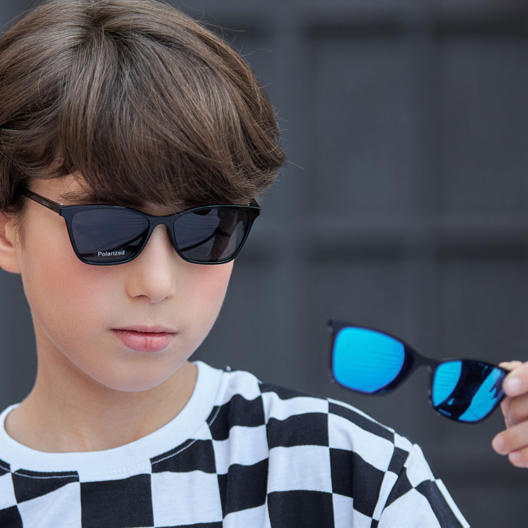 xVegas: Sun fun, made safe! These cool clip-ons, with 100% UV protection and a 6-month warranty, let your little adventurer explore in style, worry-free.