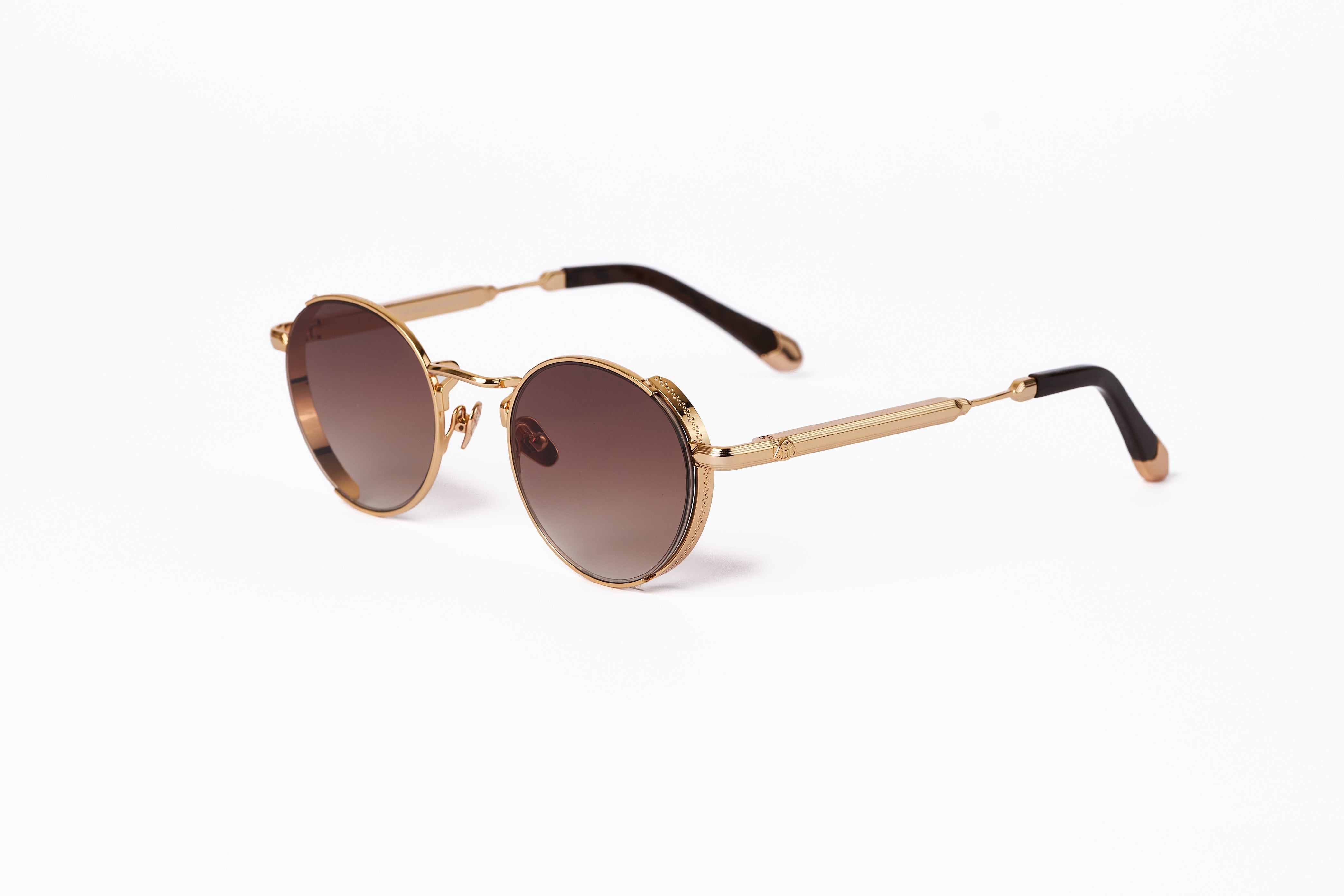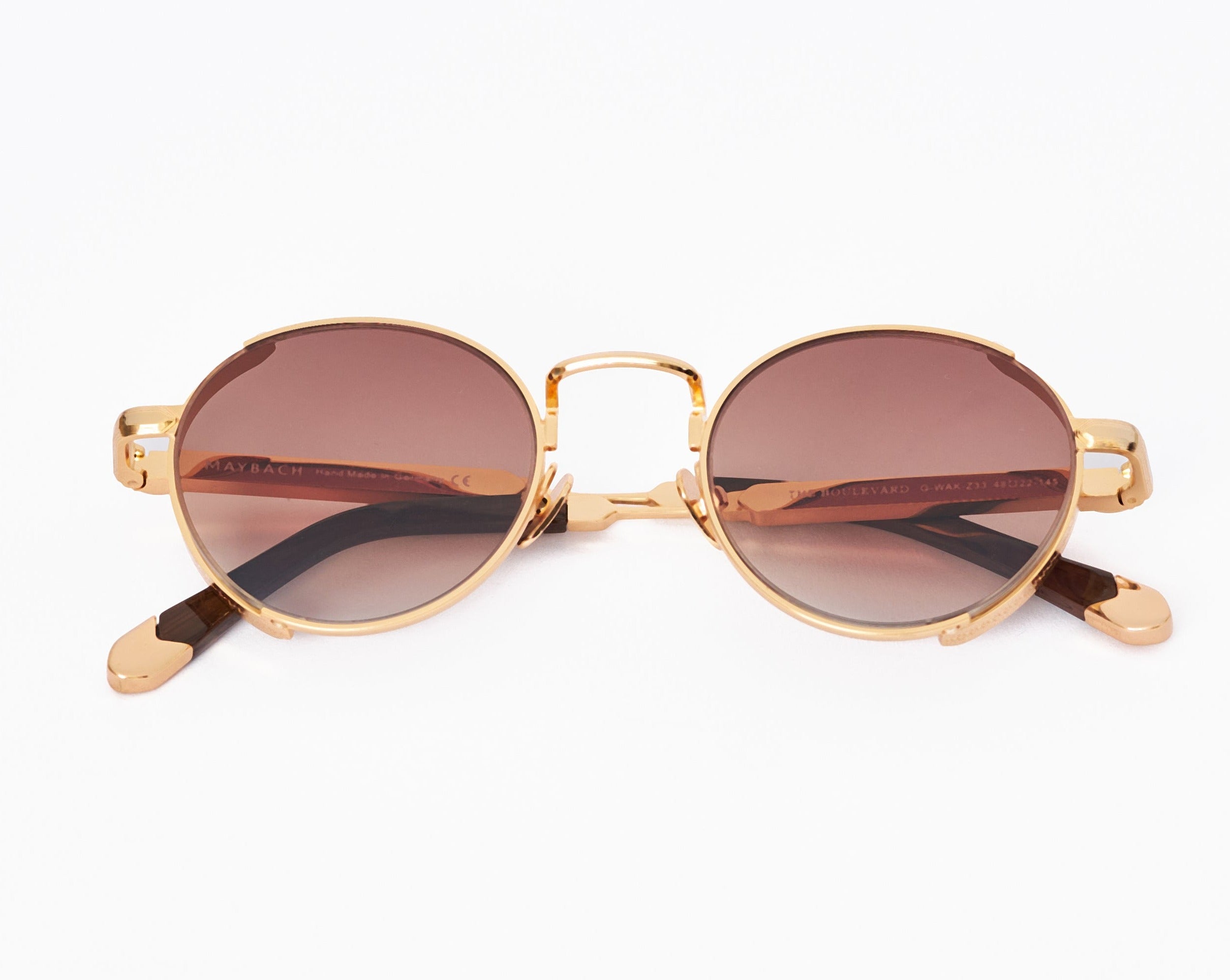 xIt’s a fine line between trend and timeless. This unisex Round Sunglasses are provided with a hand polished facet behind. The engraved MAYBACH logo on front of the lenses gives the frame its unmistakable touch.
